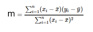 Now there are two unknowns m and c. so using calculus if we take the partial derivatives with respect to m and c and put them equal to 0 and solve the two equations we will get slope m as following: