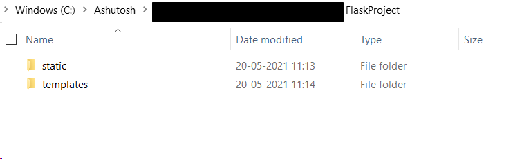 goto the directory where you want to save the project. There you create a parent folder as FlaskProject. Inside FlaskProject folder create the following sub folders. And follow the naming as it is for these two sub folders. See they are all in lowercase and templates end with s.