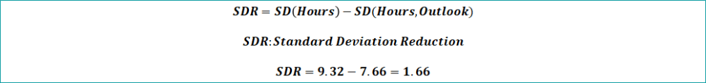 To calculate standard deviation for individual attributes for example rainy outlook then consider only rainy rows data and apply the formula on hours played.